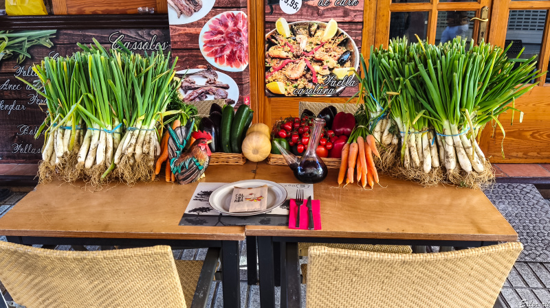 Ресторан предлагал специальное меню кальсотады - за 32,5 евро вы получаете вдоволь лука-кальсота, каталонский обжаренный хлеб с помидорами и чесноком, мясную парильяду (разные куски мяса, пожаренные на решетке), десерт и вино на выбор - красное, белое или кава. Еще предлагают сангрию, но мы в ресторанах сангрию не берем, если хочется сангрии - делаем сами.