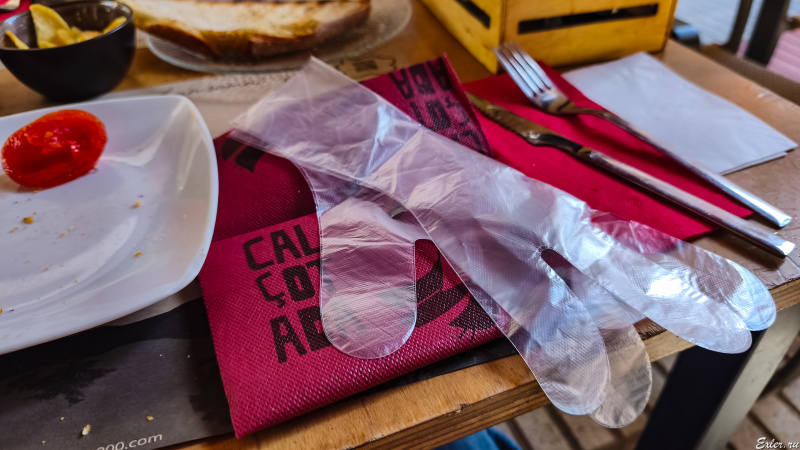 Для кальсота в нормальном ресторане обязательно предлагается следующий набор: специальный передничек, чтобы не заляпать одежду, две перчатки, дополнительная салфетка и влажная салфетка. Без передничка и перчаток к кальсоту лучше не подходить - обляпаешься с головы до ног.