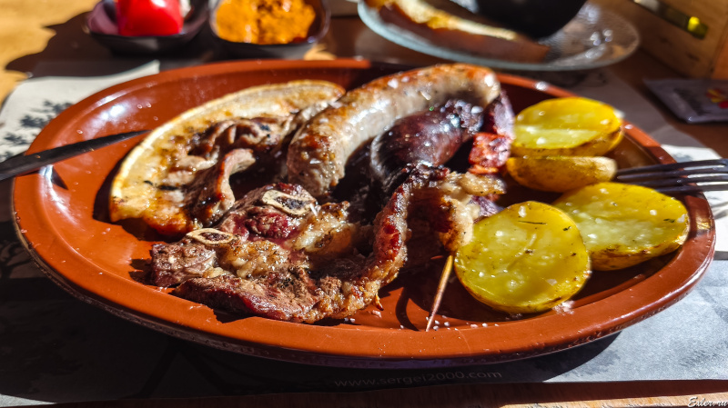 Ну а потом уже принесли мясо - кальсот-кальсотом, а есть-то что-то надо, правильно? В данном случае это была свиная корейка, говяжьи ребрышки churrasco, кровяная колбаса (я фанат), колбаса бутифарра, какая-то курица на шпажке (зачем они маленькие кусочки курицы зажаривают до состояния камня - я не понимаю) и картошка. В общем и целом - вполне нормально.