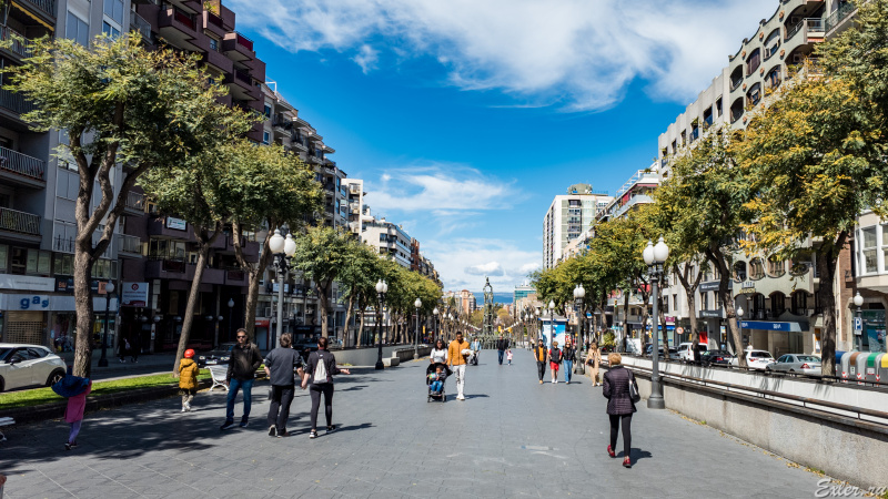 Приехали, сразу вышли на улицу Rambla Nova - это большая пешеходная улица в центре Таррагоны, почти такая же, как La Rambla в Барселоне, но другая.