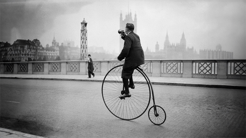 В 1870 году появились большеколесные велосипеды, получившие имя penny-farthing — по названию английских монет: пенни и фартинга. На втулке "пенни" — большого переднего колеса — были педали, а седло ездока находилось почти прямо сверху от них. Чтобы увеличить расстояние, пройденное велосипедом за один оборот, изобретатели взращивали диаметр ведущего колеса настолько, насколько позволяла длина ног ездока.