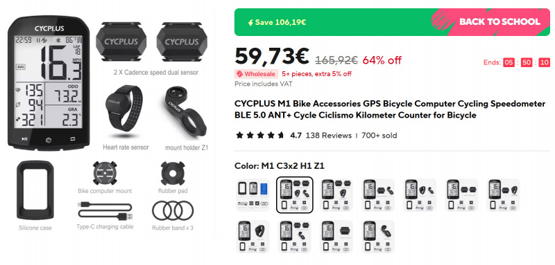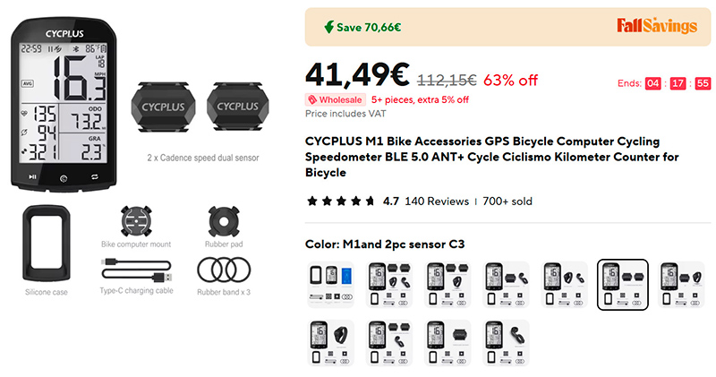 Почитал потом еще отзывы, в итоге заказал на Ali тот самый велокомпьютер, который собирался первоначально. Там еще полно комплектаций (можно и датчик пульса дополнительно взять), я взял с датчиками скорости и каденса, которые нормальные ANT+ и универсальные (можно переключать на скорость или каденс).