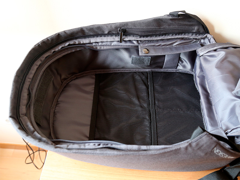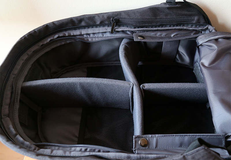 Внутренняя объемная часть рюкзака снабжена органайзером с перегородками, которые легко можно переориентировать. (Это особенно удобно в случае, если в рюкзаке носится фотоаппаратура.)