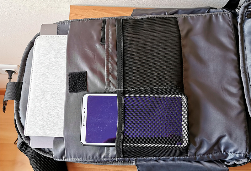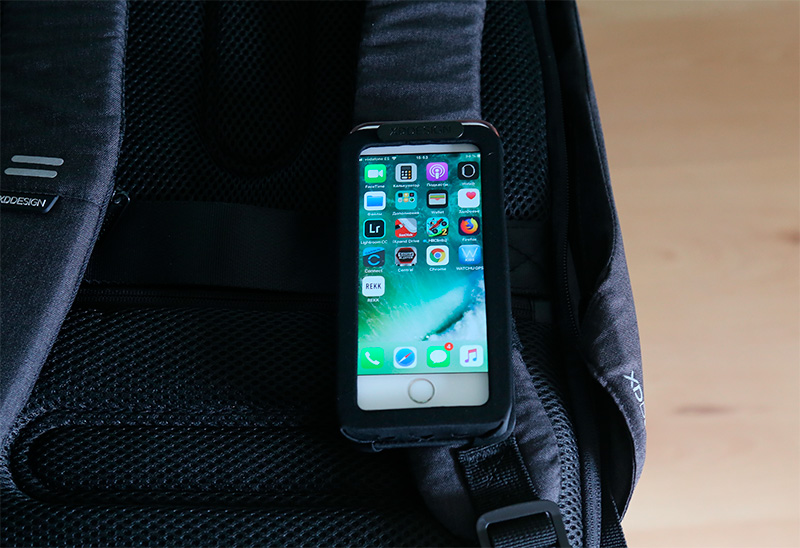 Вот такой рюкзак. По-моему, очень интересный. Что мне в нем не понравилось? Да только то, что держатель для смартфона рассчитан на маленькие устройства. Я думаю, было бы логично сделать держатель заметно больше - чтобы туда влезали смартфоны до 6,5". Потому что маленький смартфон в большой держатель можно засунуть без каких-либо проблем. А вот большой смартфон в маленький держатель - не выйдет.