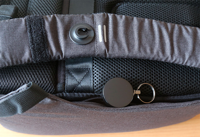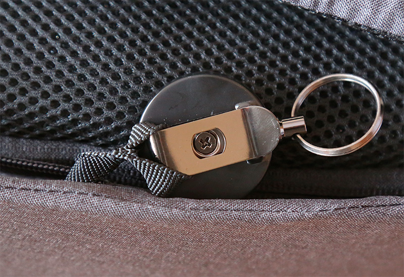 В нижней правой части рюкзака в закрываемом молнией кармашке прикреплен брелок для ключей.
