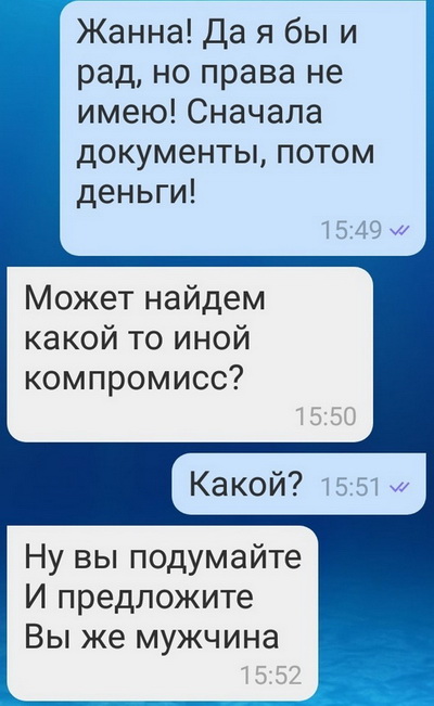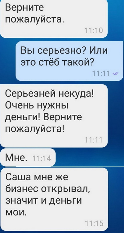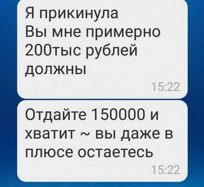 Особенно за фразу "Вы должны мне 200 000. Отдайте 150 000 и еще останетесь в плюсе."