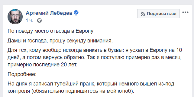 Upd: Вот насчет "тупейшего пранка" - тут Лебедев, как ни странно, полностью прав. Что это дебильнейший и тупейший троллинг - было прекрасно видно с самого начала.