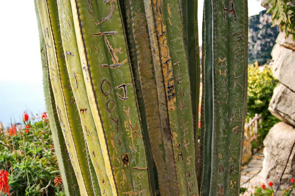 Разумеется, люди из разных уголков земли не могли не расписаться в собственном идиотизме ножом прямо по кактусу. Уроды.