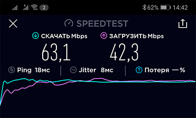 Ну, хорошо. Подключаюсь к старой сети UniFy. Там 2,4 ГГц и скорости вот такие.