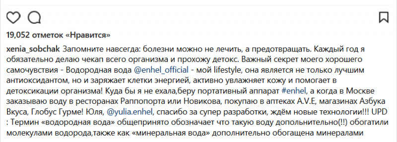 Кстати, знаете почем аппаратик для получения "водородной воды" в домашних условиях? Японский аппаратик, ясный пень, кто б сомневался. От фирмы ENHEL. Вот сколько он стоит - налетай, дивчонки! Тем более сама Собчак рекомендует. Клетки заряжает энергией. Кстати, унутре там кроме неонки, наверное, какой-никакой фильтр все-таки установлен, так что воду почистит. Может быть.
