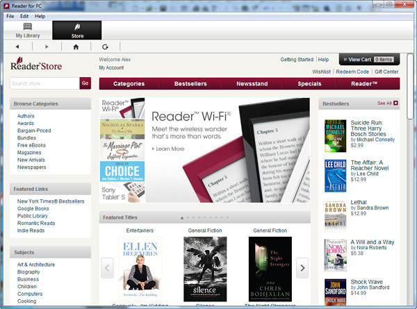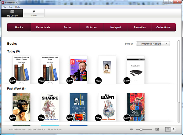 Также программу удобно использовать для приобретения (или просто скачивания, если они бесплатные) изданий из фирменного онлайнового магазина ReaderStore.
