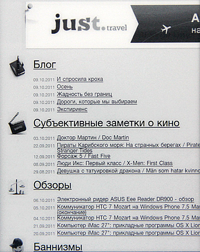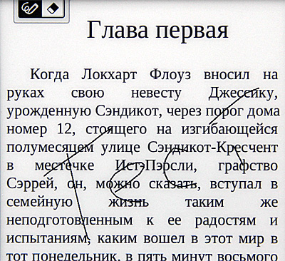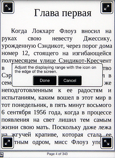 Единственная, не особенно мне понравившаяся особенность данного ридера - слишком глубоко утоплен экран, что затрудняет навигацию пальцами ко краям дисплея.