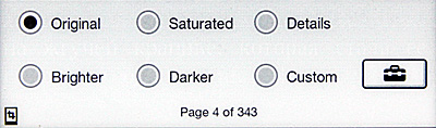 Ну и настройка режима просмотра - регулировка яркости и контраста. Не очень понимаю, зачем это нужно, потому что по умолчанию установлены самая белая подложка и самый черный контрастный текст. Любое из действий по настройке будет только портить изображение, в чем очень легко убедиться.