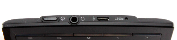 Все жизненно важные отверстия находятся здесь на нижнем торце: ресет, выход microUSB, наушники, кнопка включения. Кстати, кнопка включения на нижнем торце - это все-таки неудобно, я предпочел бы видеть ее по старинке - на верхнем торце.