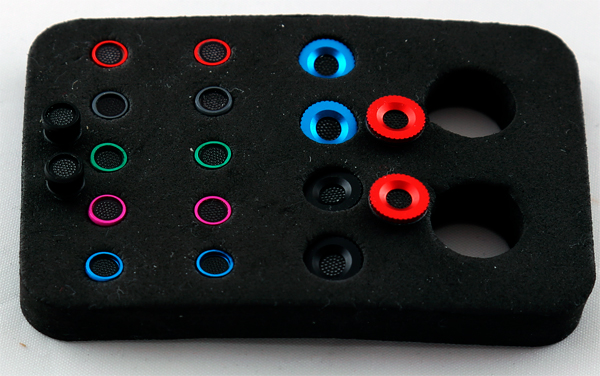 А вот весь комплект сменных насадок - передних и задних (включая те, что были установлены в наушниках).