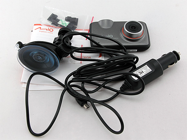 Внутри - видеорегистратор, автомобильный адаптер питания, автомобильное крепление, зажимы для кабеля, руководство пользователя. Сразу обращаю ваше внимание на то, что карта памяти в комплект не входит, ее нужно покупать отдельно. (Ну, могли бы на самом деле расщедриться хотя бы на четырехгиговую. А то кто-то радостно понесется с покупкой к машине, подключит регистратор, и ему тут же птичка Обломинго по полной программе. Впрочем, эти карточки, конечно, продаются на каждом углу.)