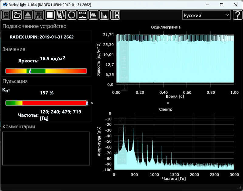 75% яркости - уже мерцает вовсю: 63% при норме 20%.