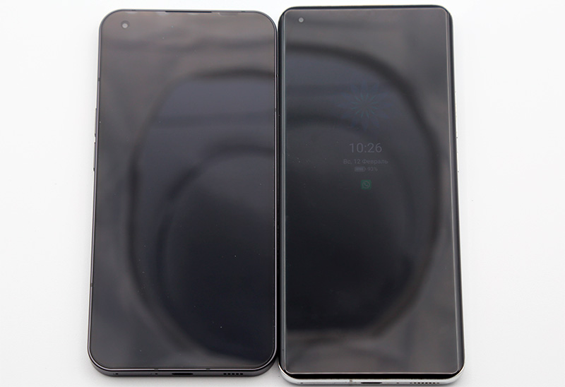 Ну и вот этот смартфон рядом с моим Xiaomi Mi 11 Ultra. Видно, что соотношение сторон экрана несколько отличается.