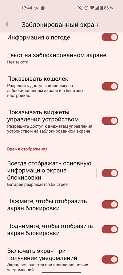 Информация на заблокированном экране и настройка режима активного экрана (AOD).