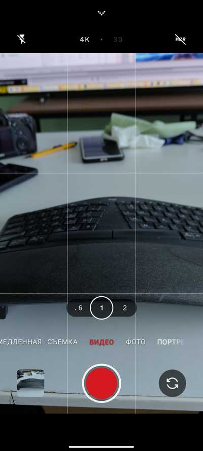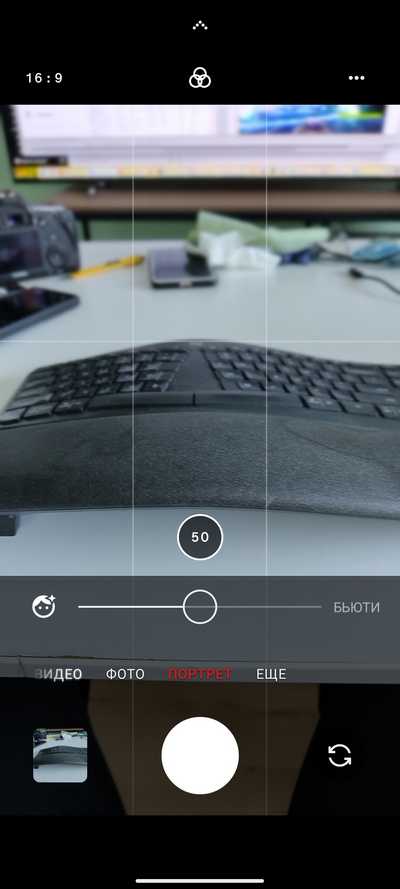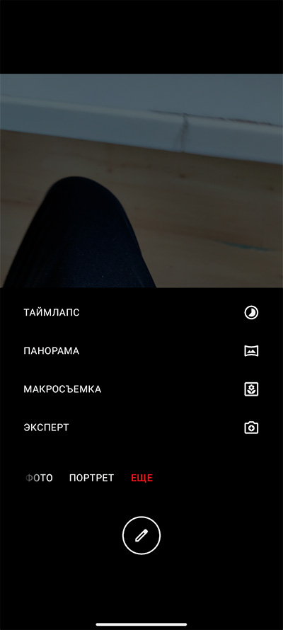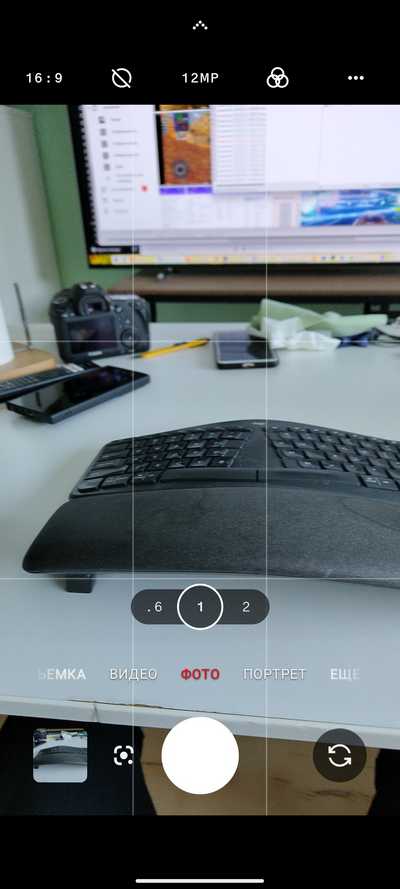 Интерфейс камеры. Снизу переключаются режимы: замедленная съемка, фото, видео, портрет, остальные режимы (это все настраивается). Выше идет переключение между сверхшириком, основной камерой и цифровым зумом (по умолчанию 2-кратный, но можно вызвать линейку зумов и масштабировать до 20-кратного). Сверху - пиктограммы различных переключателей и пиктограмма меню.