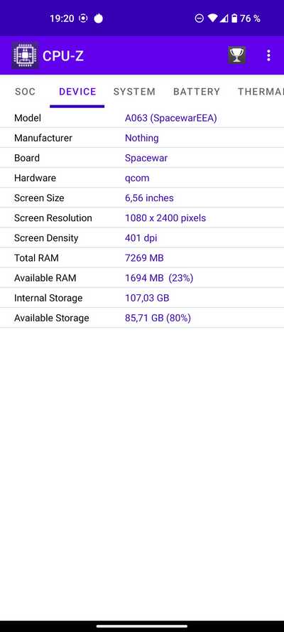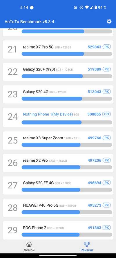 Операционная система: Android 12, оболочка Nothing OS 1.5.3