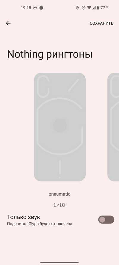Качество звука - хорошее, шумодав работает достаточно эффективно. Для разных абонентов можно не только устанавливать разные рингтоны, но задавать конкретные световые сигналы Glyph на задней крышке (я это покажу в разделе, посвященном этому интерфейсу).