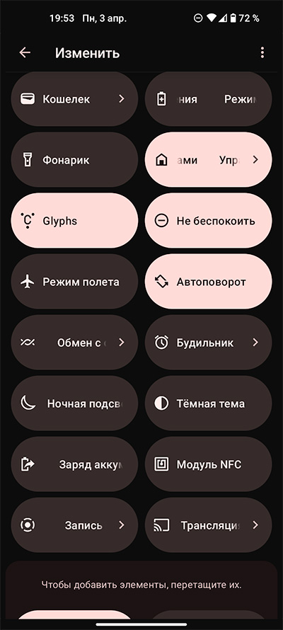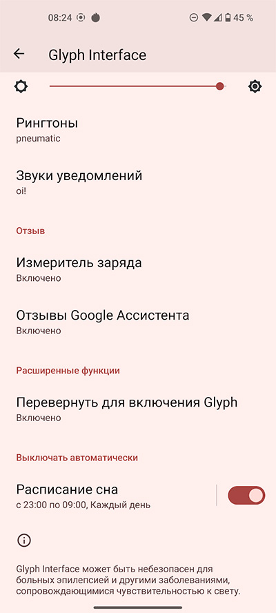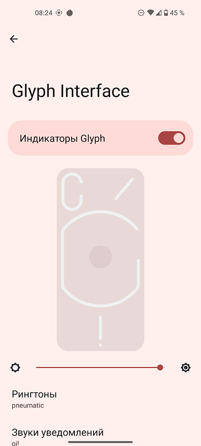 Те самые светодиоды на задней крышке здесь называются Glyph-интерфейс. Вот его настройки.