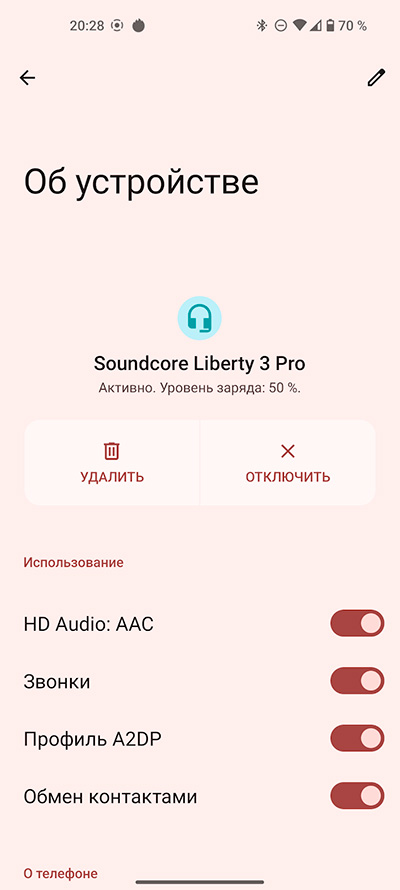 Для проверки беспроводного звучания подключил наушники Soundcore Liberty 3 Pro. Они подключились по кодеку AAC.