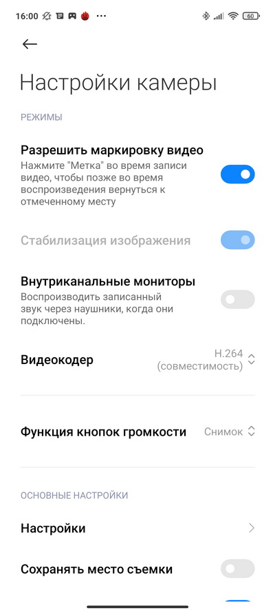 Режим видео. При нажатии на пиктограмму стабилизации принудительно включается режим FullHD 30 fps, стабилизация работает только в этом режиме.