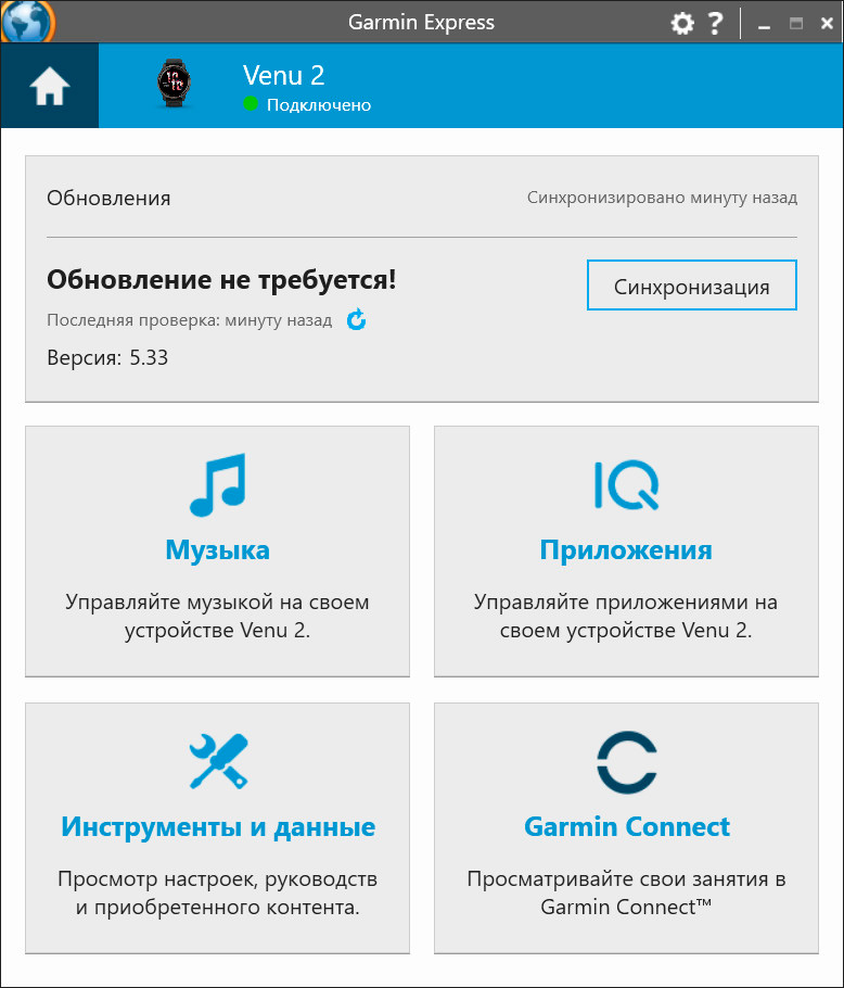 Приложение Garmin Express