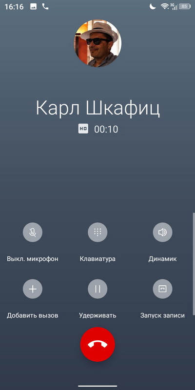 Входящий вызов, режим разговора. Обратите внимание, что есть запись разговоров.