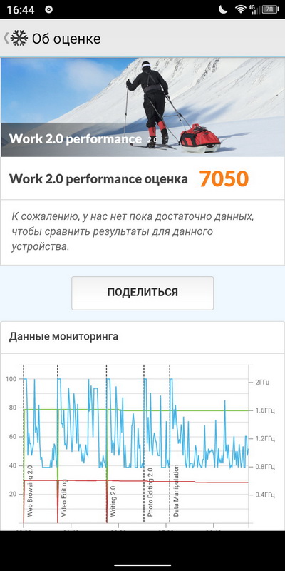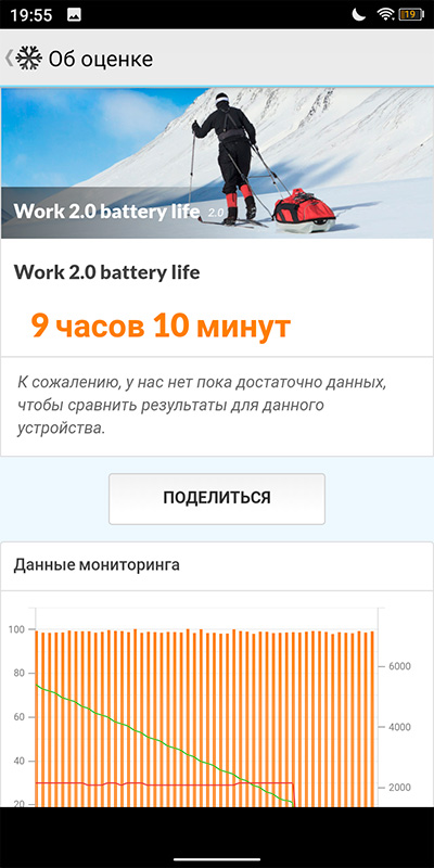 Синтетический тест PCMark - важный показатель. 9 часов - результат достаточно скромный: он показывает, что при серьезной нагрузке смартфон может не продержаться полный двенадцатичасовой день, через одиннадцать часов он может быть уже на издыхании. Но это именно при очень серьезной нагрузке.