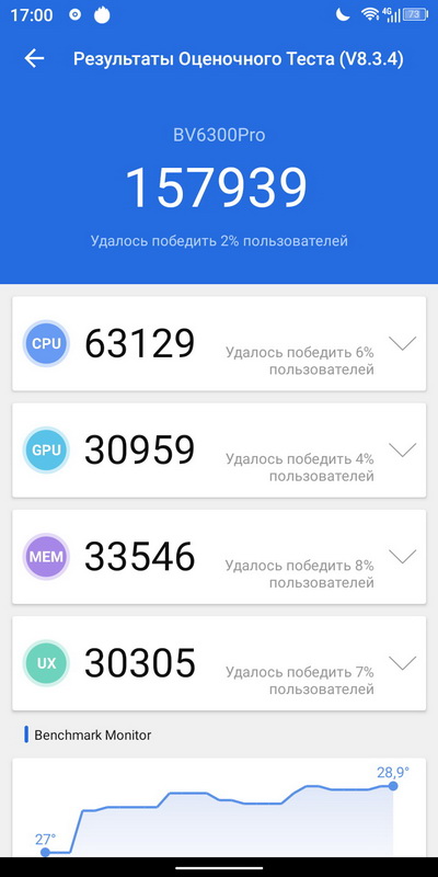 Быстродействие по AnTuTu. Кстати, вполне неплохо.