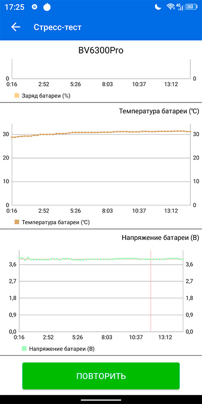 Стресс-тест AnTuTu. Температура батареи поднялась чуть выше 30 градусов: смартфон вообще очень холодный, нагрев почти не ощущается.