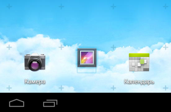 Выбирается пиктограмма приложения или виджет, нажимаете на них пальцем и держите: перед вами появляются скроллируемые десктопы, на любой из которых можно поместить эту пиктограмму или виджет. Оно все происходит, конечно, наглядно, но кнопку "+" все-таки убрали совершенно зря - теперь приходится совершать лишнее действие.