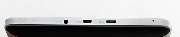 Нижний торец - выход адаптера питания, miniHDMI, miniUSB и reset. Отдельный адаптер - нужен, через USB планшет заряжается очень и очень медленно, даже если используется именно сетевой адаптер, а не USB-порт компьютера.