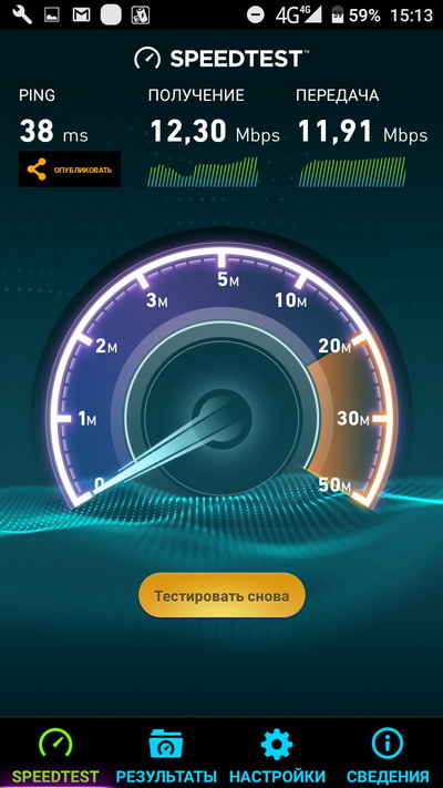 Скорость Интернета по мобильной связи - немного выше ожидаемого.
