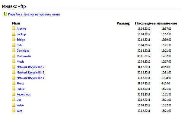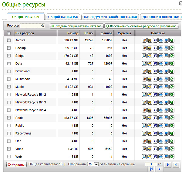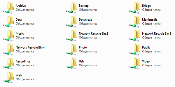 Доступные общие ресурсы устройства NAS