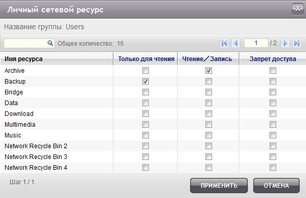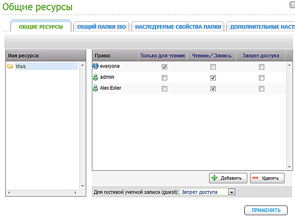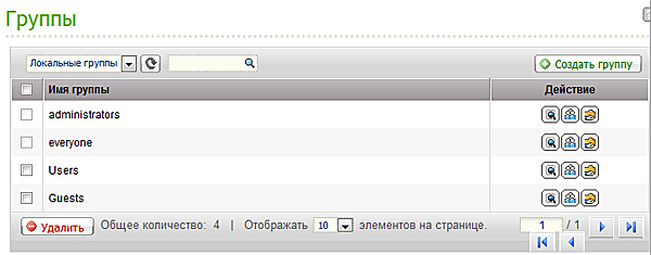 Далее создаем группы, конкретных пользователей и определяем права групп и конкретных пользователей к каждому из общих ресурсов.