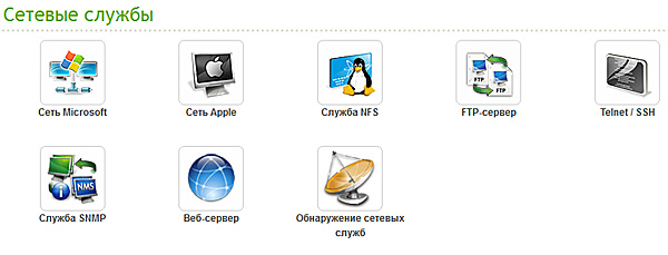Сети Microsoft, Mac OS, Linux, FTP-сервер, Web-сервер, Telnet/SSH, служба SNMP (Simple Network Management Protocol — простой протокол управления сетями).