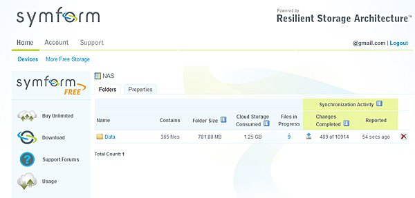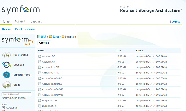 Ну и при необходимости, если нужно восстановить какие-то данные, они восстанавливаются из этого сервиса через данный NAS, через клиент сервиса (просто скачиваете небольшую программу) на любом компьютере без всякого NAS, а также просто из любого браузера в вашем аккаунте на сайте www.symform.com.