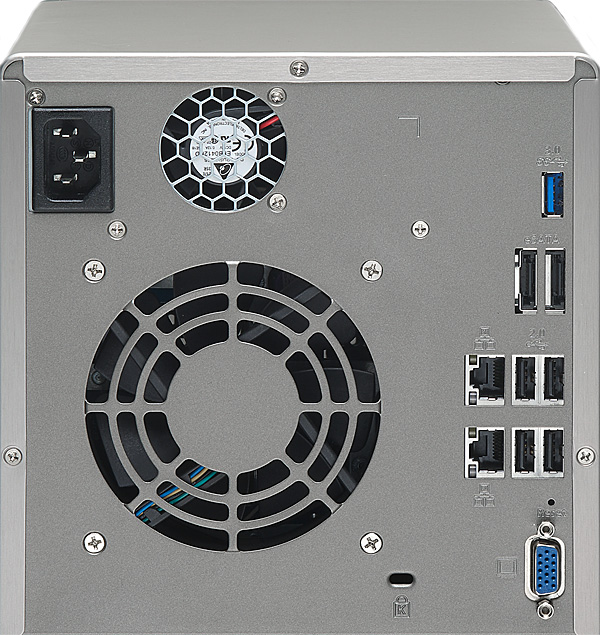 Из экзотики - аж два сетевых интерфейса, поддержка USB 3.0, два порта eSATA.