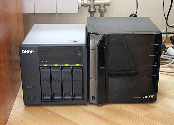 Накопитель - довольно компактный. Мой предыдущий сервер Acer Aspire easyStore был совсем не громоздкий, а этот NAS еще меньше - вот они рядом.