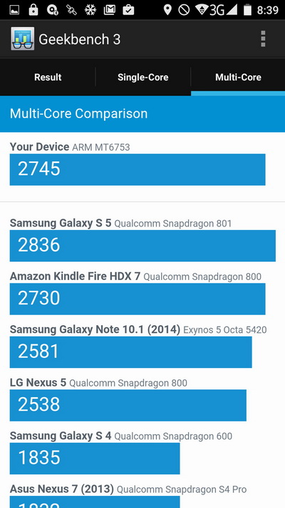 Процессор: MTK6753 1,3 ГГц 64-бит, 8-ядерный