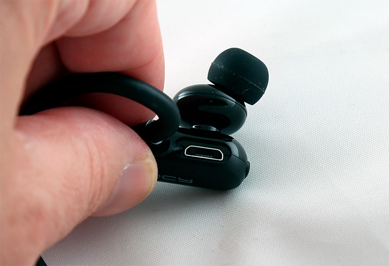 С обратной стороны - закрытый заглушкой порт для зарядки. Заглушка мягкая, резиновая, открывается без проблем, и ее не тянуло сразу оторвать, как я это сделал с QCY QY8.