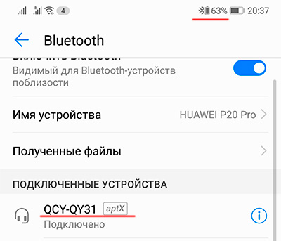 К соответствующим смартфонам подключаются с использованием aptX. В каких-то отзывах читал жалобы на то, что, мол, тут невозможно узнать уровень заряда - ну так, ребята, надо нормальные смартфоны использовать, которые все это показывают (в виде уровня вертикального индикатора или просто в виде процента заряда для BT-устройств).