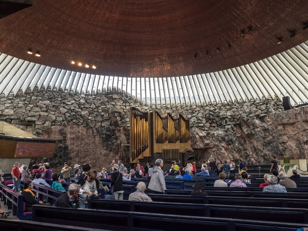 Ну и напоследок заглянули в знаменитую "Церковь в скале". Ее построили в конце 60-х годов прошлого столетия. Церковь вырублена в гранитной толще скалы и накрыта стеклянным куполом, через который в храм попадает очень много света. Тут великолепная акустика, поэтому в церкви часто проходят церковные и светские концерты.