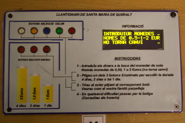 Чудесная поповская хохма с современными технологиями. Раньше брали свечки за еврик, а теперь - все очень круто! Стоит большой агрегат для выжимания денег: можно выбирать разные цвета и задавать количество дней "горения". Действие, разумеется, совершенно бессмысленное, но на получаемые от всего этого деньги можно купить "Мерседес" отцу настоятелю. Впрочем, врать не буду, вполне возможно, что в данном случае деньги могут тратиться на дальнейшую реставрацию.