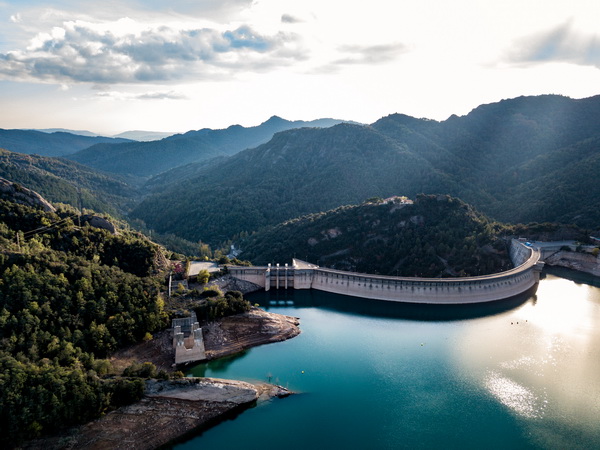 Совсем недалеко от Берги расположено крупное водохранилище с дамбой. Я тут уже бывал и снимал. В этот раз на квадрокоптере подлетел к дамбе поближе.