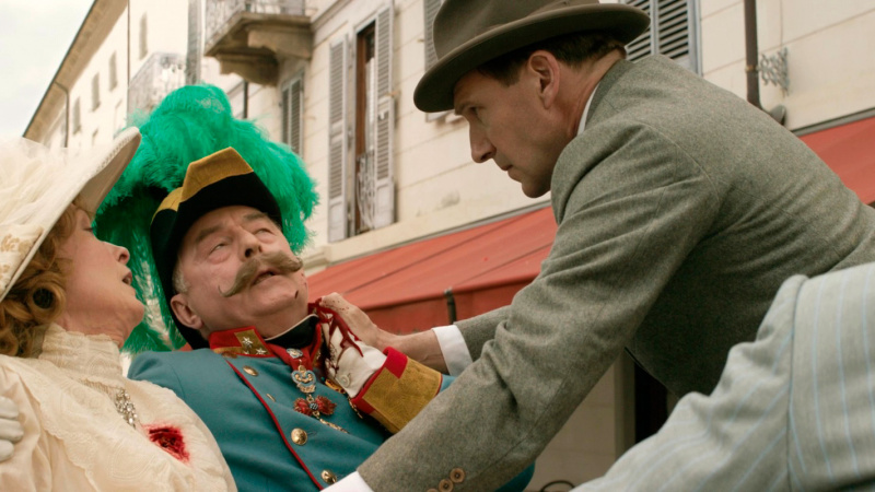Однако Принципу первоначально не удалось поразить бомбой эрцгерцога, потому что возмужавший Конрад (Харрис Дикинсон), которого господин герцог Оксфордский привез защищать своего друга Франца, отбил бомбу ловким крикетным ударом. Однако после этого, когда Гаврило пил горькую в сараевском кабаке, собираясь принять яд Доктора Зло, он снова увидел Франца Фердинанда, на свою беду проезжавшего мимо, после чего таки пристрелил эрцгерцога семью пульками, так что тут, конечно же, неминуемо началась Первая мировая, которую не могли не начать два близких родственника короля Джорджа - кайзер Вильгельм и рюськи тсар Николай.